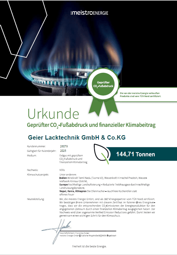 Unser Team denkt weiter: Über 70 % wasserbasierte Lacksysteme, LED-Technik, Blockheizkraftwerk und ein geschlossener Kreislauf für Abfälle – wir setzen konsequent auf Ressourcenschonung und Energieeffizienz, inklusive CO²-Reduktion bei Gas und Strom. Für hochwertige Ergebnisse und eine nachhaltige Zukunft – für Umwelt, Region und Menschen.